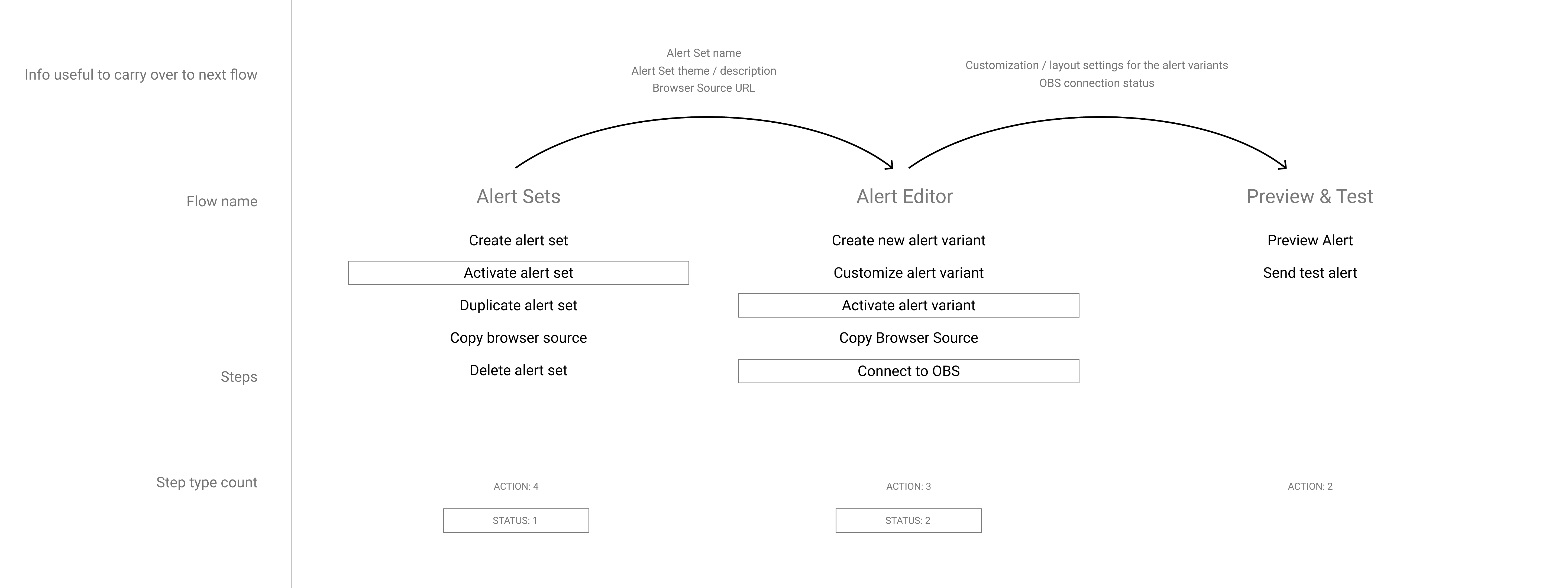 From this I was able to identify the mechanics of the process. My aim was to look for "gold nuggets" — crucial aspects of the alert creation process that required additional context and were essential for the streamer to comprehend.