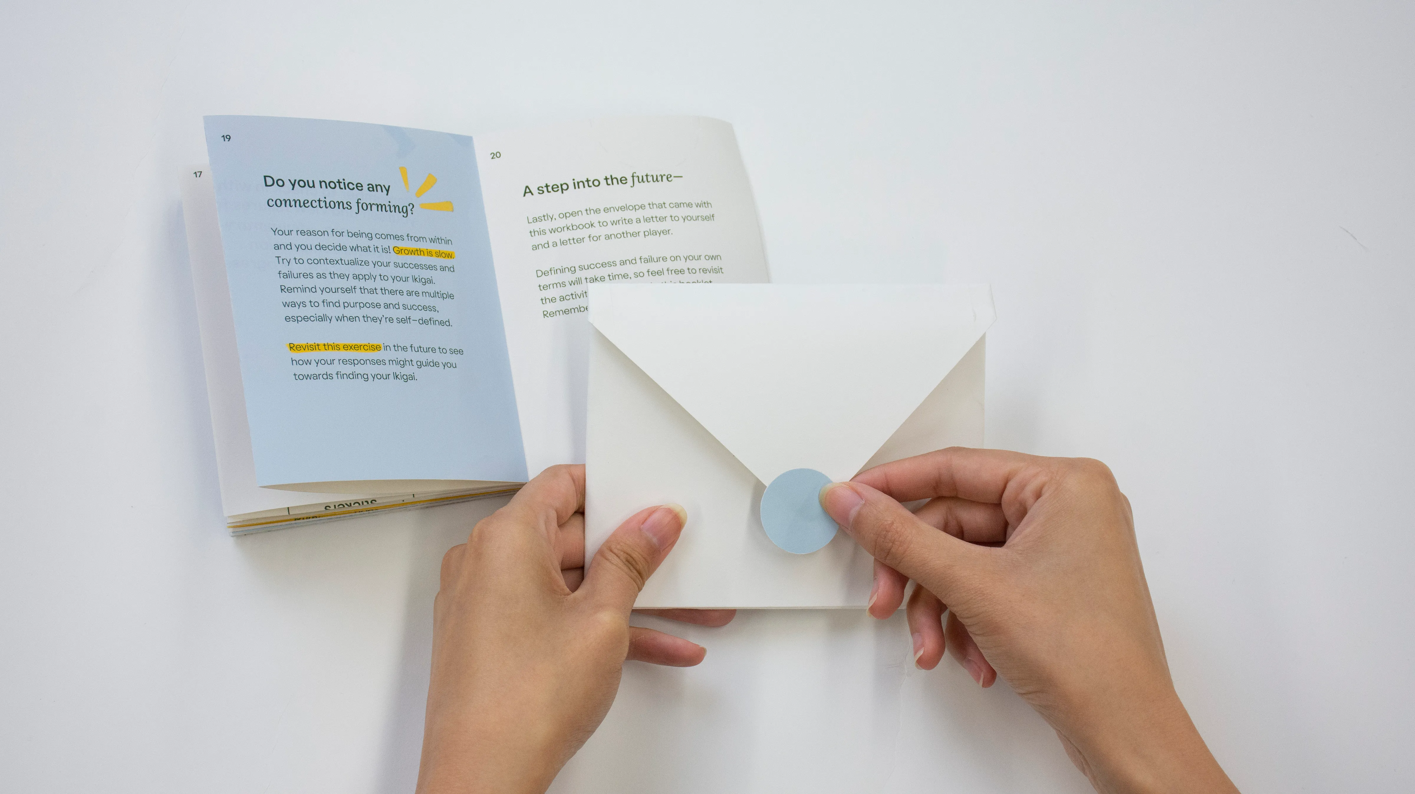 The final outcome is a workbook + interactive website that learners flip through and engage in reflective and interactive activities ultimately being able to see their growth over a short period of time.