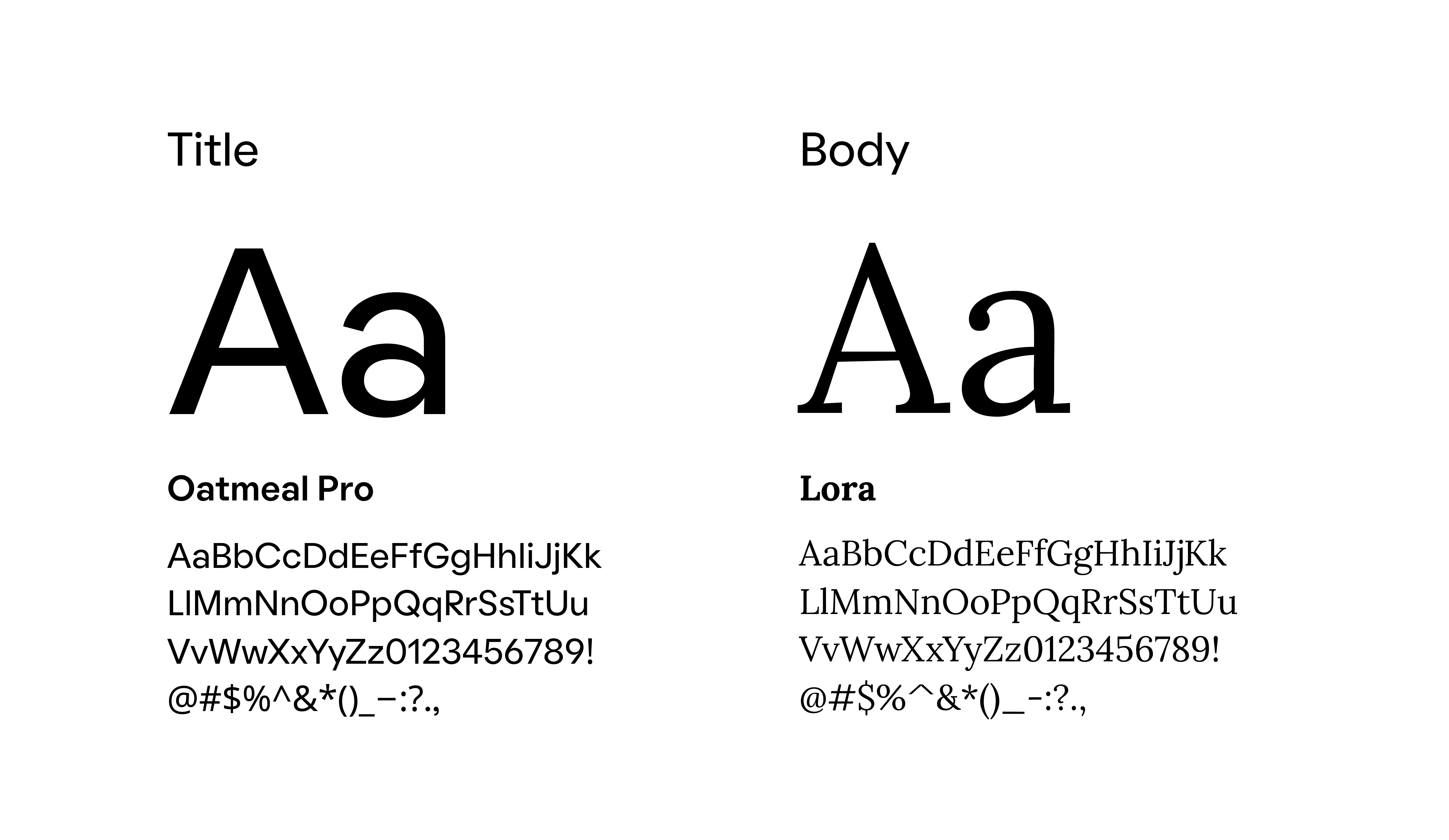 Oatmeal Pro and Lora typefaces were carefully chosen to complement the colors and evoke a playful and comforting feel.